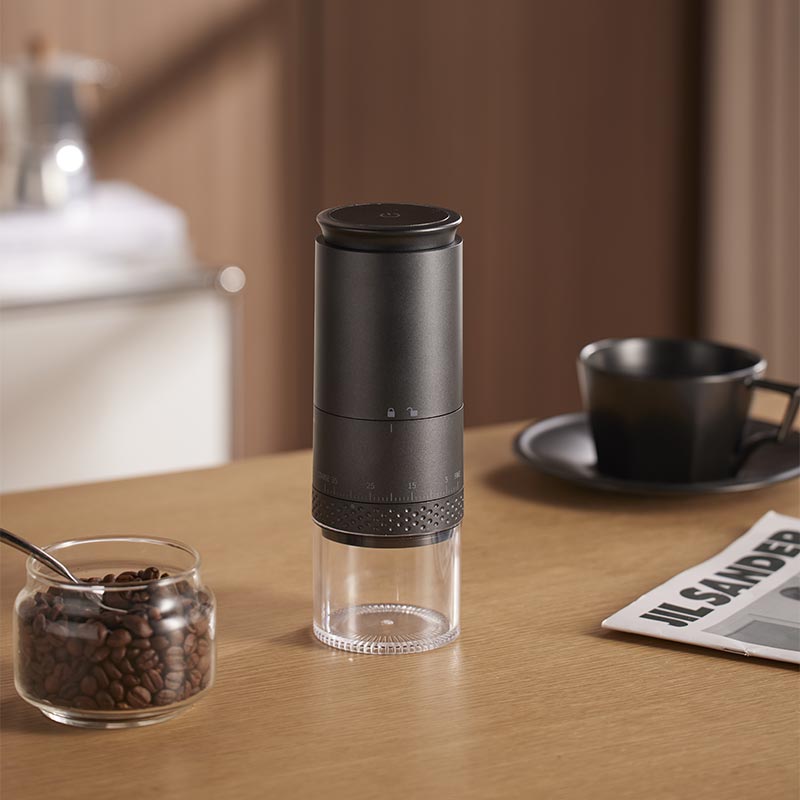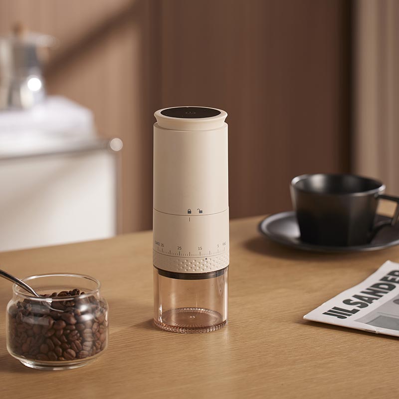 HB-990、充電式ポータブルコーヒーグラインダー、ハウジングに高品質のABS素材を使用、セラミック合金研削コア、1500 mAhバッテリー、USB充電付き。LEDディスプレイ、タッチコントロール。ポータブル コーヒー グラインダーは、ご家族やオフィスで最高の製品となるはずです。最新の充電式テクノロジーと高速充電バッテリーを使用してください。